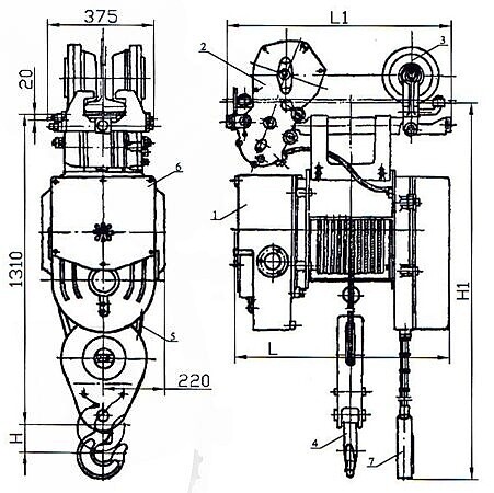 Таль электрическая канатная передвижная ТЭ 320 (3,2 т) | «Сибаналитпром»